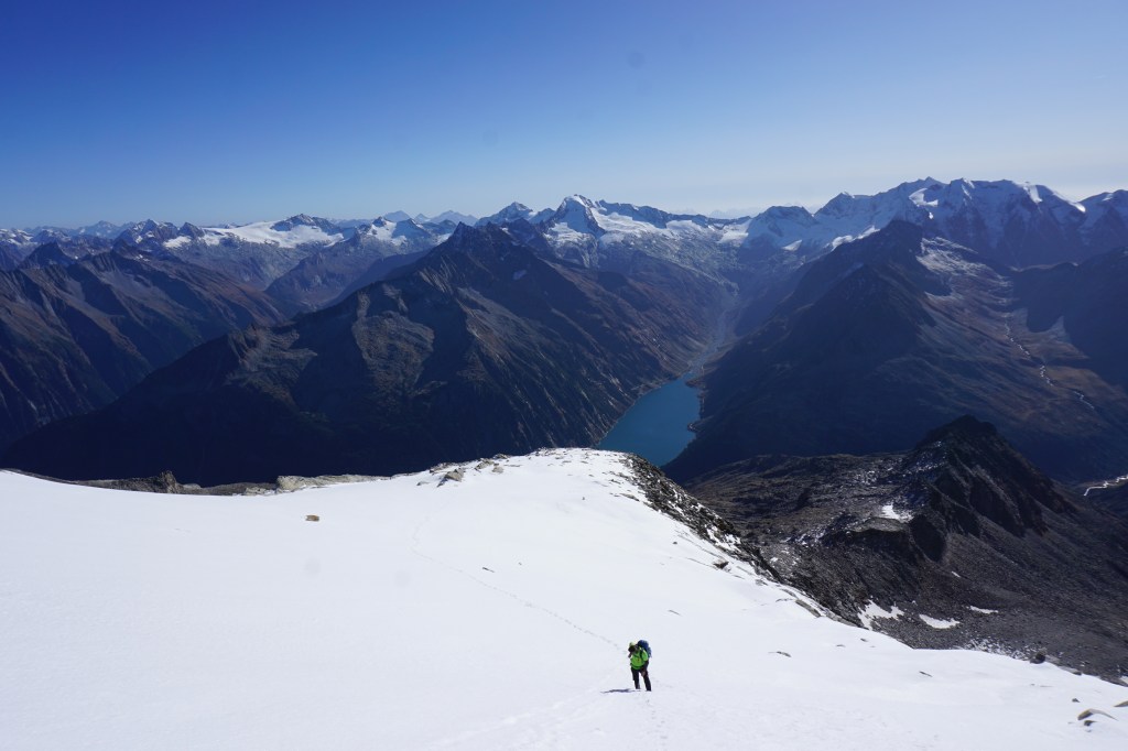 Mit Christian verbrachte ich das letzte Oktober Wochenende im Zillertal rund um den Olperer den wir auch besteigen wollten. Durch die schon etwas winterlichen Verhältnissen entschieden wir uns für den Südgrat (Riepengrat) der mit Schwierigkeit 2 und Ausgesetztheit bewertet ist.